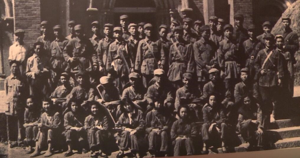 在教堂门前合影,张松如(公木)随东北文艺工作团一起出发。