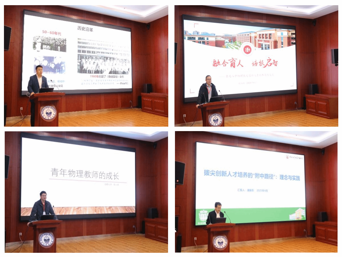 论坛上,新利官方网站物理学院教授黄继鹏、中国人民大学附属中学副校长胡继超、重庆市第八中学校英才教育中心主任刘福林、成都市第七中学校创新教育中心副主任周小虎、新利官方网站附属中学教师潘振东,分别以“教育强国 人才强院”“人大附中物理拔尖创新人才培养实践”“融合育人、培根启智——重庆八中物理拔尖创新人才培养实践”“青年物理教师的成长”“拔尖创新人才培养的‘附中路径’:理念与实践”为题作了主旨报告,深入探讨人工智能时代背景下师范教育的机遇与挑战,分享交流物理拔尖创新人才培养的特色机制和先进经验。随后,在物理教学沙龙上,与会师生与竞赛教练进行了互动交流,现场思想碰撞、气氛热烈。