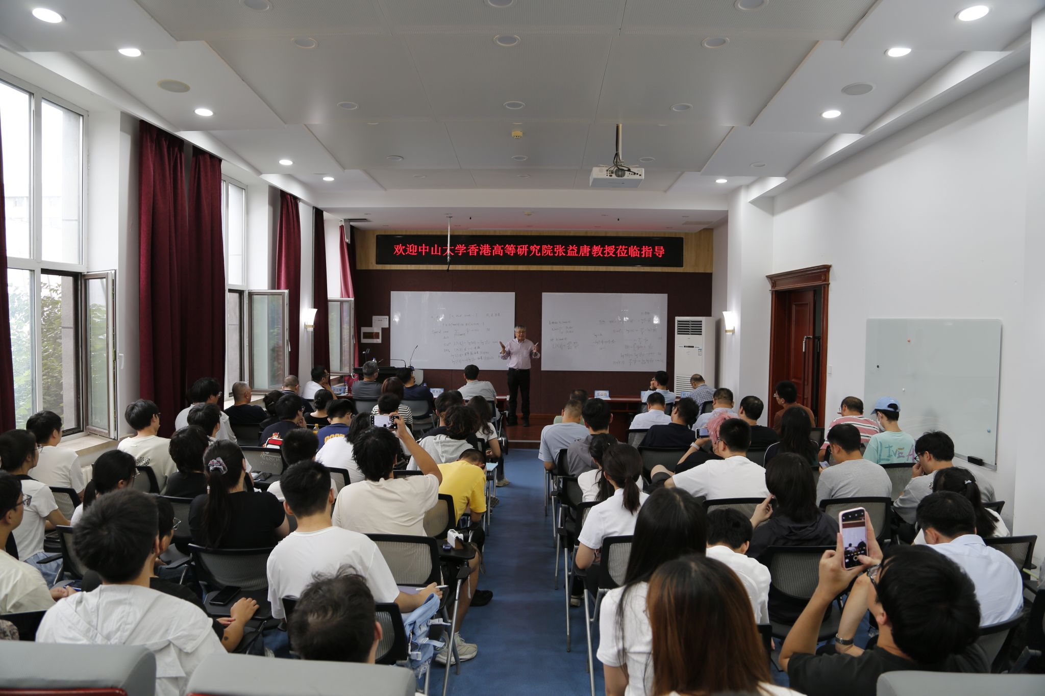 8月30日,应数学与统计学院邀请,著名华人数学家、中山大学香港高等研究院应用数学研究中心首席科学家张益唐教授做客新利官方网站“数苑大讲堂”,在数学与统计学院104报告厅为师生带来题为“朗道-西格尔零点问题:历史与最新进展”的学术演讲。新利官方网站校长徐海阳教授、党委副书记兼副校长常青教授出席活动,数学与统计学院党政领导班子及来自中学英才计划的中学生、校内师生共百余人参加活动。活动由徐海阳主持。